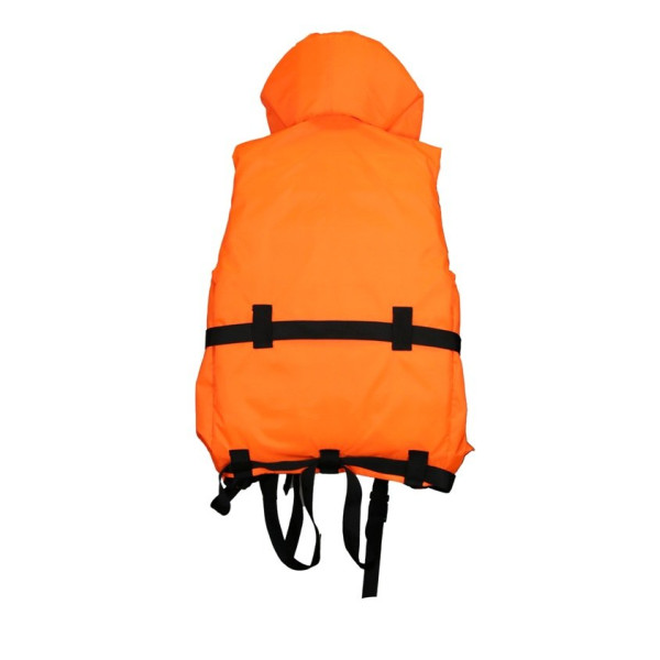 Для поддержания головы над водой у жилета имеется удобный подголовник-воротник с сигнальными полосами, которые обеспечивают видимость человека в темное время суток. Жилет имеет два больших кармана с клапанами и нагрудный кармашек, в котором находится сигнальный свисток. Для надежного удержания человека при падении в воду у жилета предусмотрены регулируемые стропы на поясе и груди, а также паховые ремни. Надежная тракторная молния и поясные ремни с застежками надежно фиксируют спасательный жилет на Вашем теле.